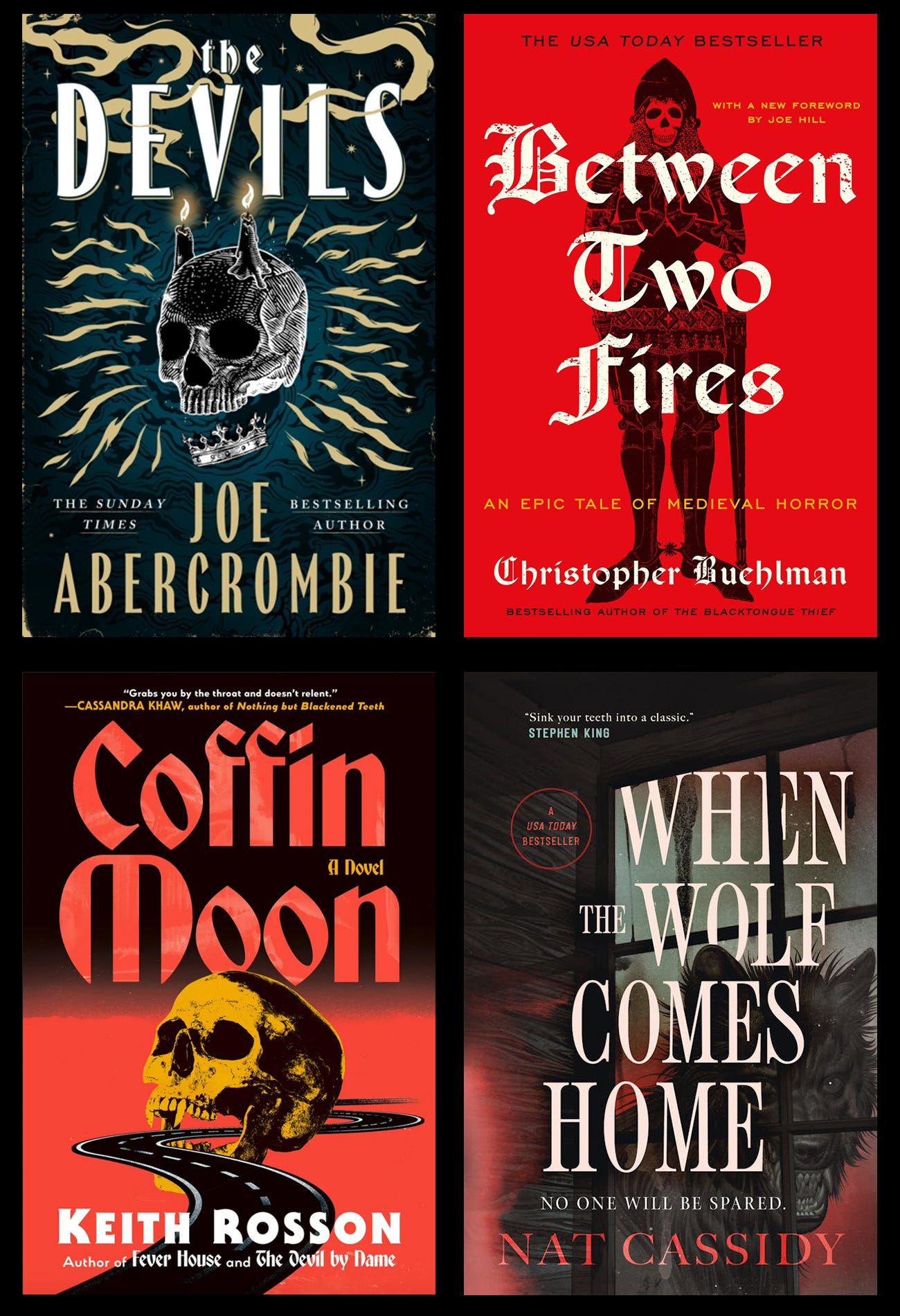 Here’s my frightful four in 2025 and this crowd might be especially satisfying for readers who dug King Sorrow. If you want a big multi-character epic fantasy full of bitter reversals and massive action set pieces, welp, there’s a reason James Cameron wants to make a franchise out of The Devils. Between Two Fires is cut from a similar ancient tapestry and I love the way the heroes would hack their way out of one desperate situation and straight into another. I’ve been high on Coffin Moon for months and I feel like it goes with King Sorrow like the shot and the chaser—this is the kind of high octane horror I live for. I probably haven’t said nearly enough about When the Wolf Comes Home which piles terror on top of terror; it begins like The Terminator, but with a werewolf in place of a robot, and then turns into something far weirder.