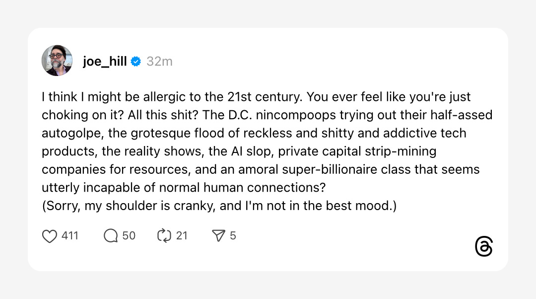I know it ain’t great out there. I took my gloomsome mood to Threads earlier yesterday morning (writing this on December 11th):