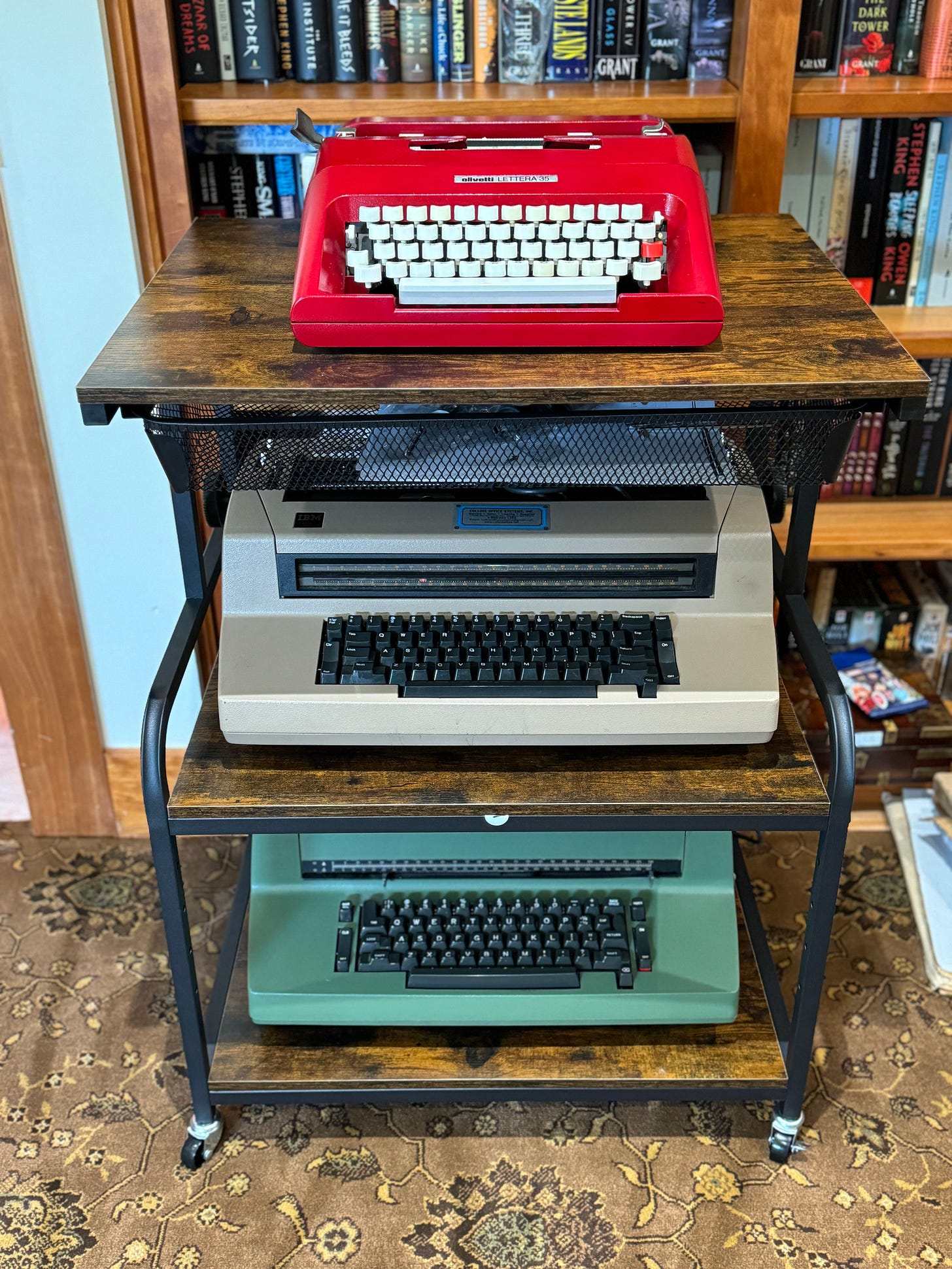But I don’t know if I can work that way and get a novel done every year. So, just in the last couple months, I’ve shifted over to writing my first drafts on the typewriter instead of the computer. It’s the happy spot halfway between scrawling a story on parchment with a raven’s feather and using some bloated piece of word processing software.