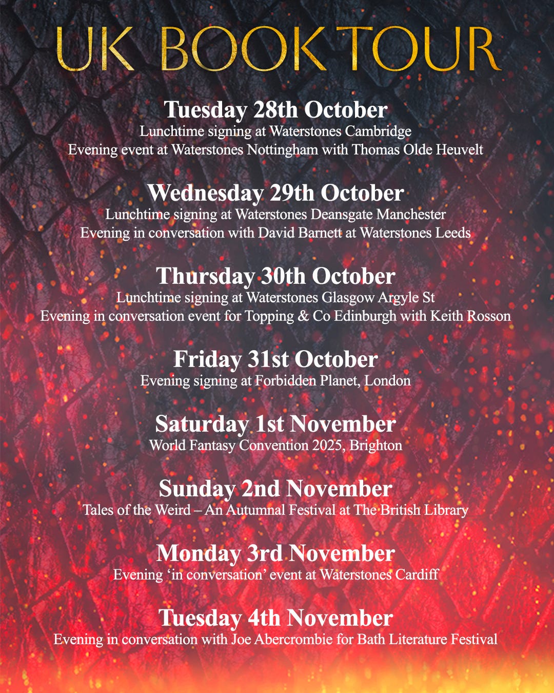 Can’t make one of these events? You can still get a signed book. In the U.S. B-A-M has ‘em; so does B&N. U.K. buyers can lock down an autographed copy from Waterstones, and indie Sevenoaks Bookshop is offering a limited number of signed and personalized copies, and they ship throughout the Kingdom.
