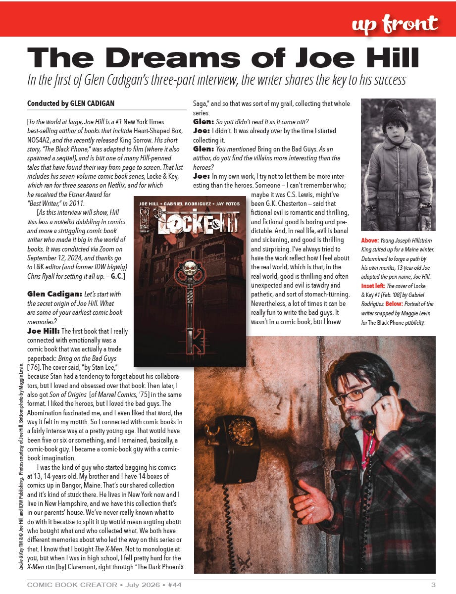 Here’s a look at the opening of a three-part interview I did with Glen Cadigan for Comic Book Creator, where I talked about my life in the funny book field. Comic Book Creator is pretttty niche and can be a little tricky to find (it is, to comics, roughly what Locus is to SF&F, and if you understand that reference, congrats, now you know what I mean when I say this is niche). If you’re interested, though, hit your local comic store and order a copy, they’ll get you one. I believe the cut off order date is March 4th.