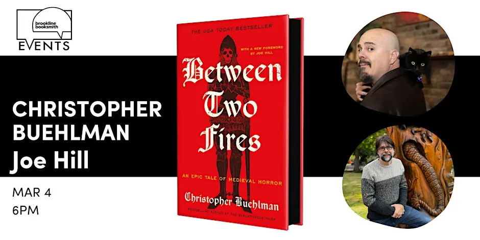 One of the very best books I read in 2025 was Christopher Buehlman’s Between Two Fires, an epic fantasy about a fallen knight hacking his way across a demon-infested Europe in the latter days of the black plague. It’s a novel in the form of several timeless weird tales, written with beauty and wit, and I was beyond honored when I was asked if I’d write an introduction for its (re)publication1. Chris and I are going to have a chance to sit down and talk about this book when he visits The Coolidge Corner Theater in Brookline, at an event hosted by Brookline Booksmith. I gotta laugh about that—this is also where I did my last event. We tied up the King Sorrow tour at the Coolidge Corner Theater. Chris is signing after, I am not (this event is about his work, not mine). I hope to see you there.